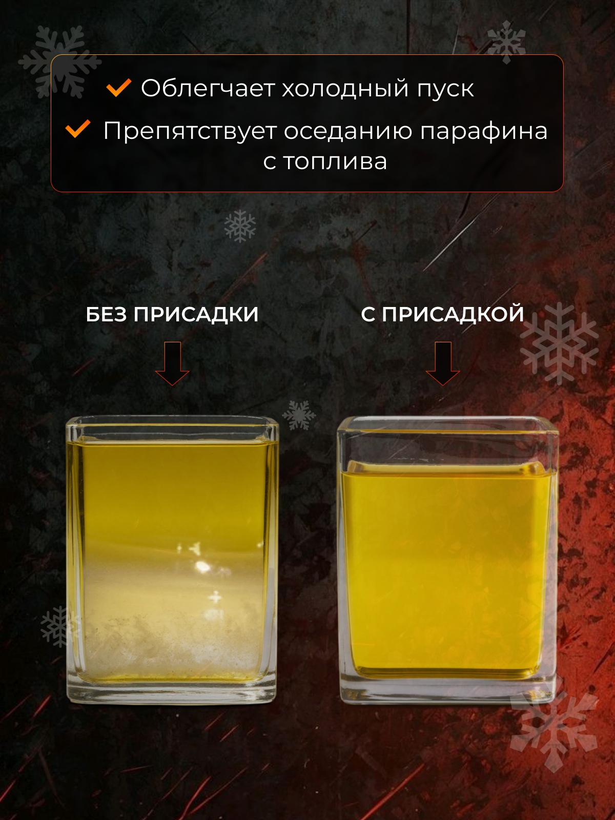 Присадка снижает температуру фильтруемости дизельного топлива до −35 °C, что позволяет сохранить текучесть и прокачиваемость через топливные фильтры даже в экстремальных морозах. Также она понижает точку застывания топлива, предотвращает образование парафиновых кристаллов и укрепляет стабильность смеси за счёт диспергирующих компонентов.